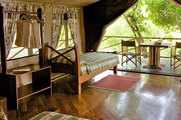 Severin Safari Camp stands amid 25 acres of savannah, in one of the most beautiful areas of Tsavo West National Park, within easy reach of famous Mzima Springs. Unfenced, the camp offers 27 octagonal tents, all with extensive private verandahs. The camp overlooks two natural water holes and o [ ... ] |