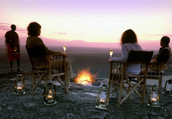 The open sides allow panoramic views across the vast plains and a large stone and teak verandah, with a hammock slung from an old gnarled tree, is the ideal spot in which to wait for the secretive Mount Kilimanjaro to peep out from behind its cloud cover.