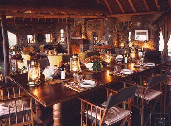 Part of the open plan, high-ceiling main living area, the large dining table is surrounded by leather-cushioned safari chairs - dining is communal. Owned and run by an Italian couple, the camp specializes in Italian cuisine, local and international dishes. Meals are taken in Tembo House, where the 'fine dining' experience includes the use of crystal glasses, fine table settings and candles.