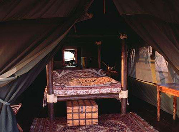 • 6 double tents with twin beds and a honeymoon suite all with verandah, and large private bathroom with flush loo, shower and bidet