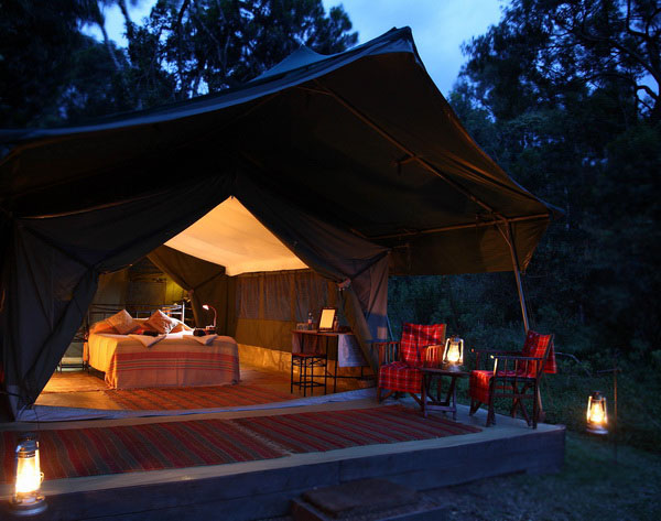 There are just 8 tents, each with an ensuite bathroom (with hot and cold running water and flushed WC). One tent is slightly larger than the rest so as to accommodate families, or to act as a honeymoon suite. The rate includes