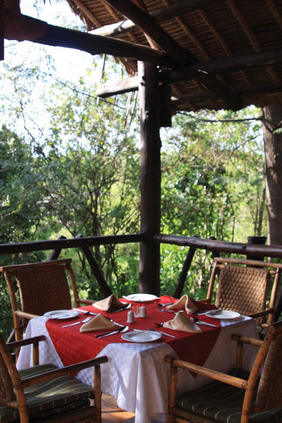 The central dining room, which is presented in traditional Maasai style, offers a lavish selection of principally buffet-styled meals, which reflect international and local cuisine and always provide plenty of vegetarian options. Drinks can be taken in the stylish bar, or against a bush setting. Entertainment in the form of traditional cultural displays is offered most nights.