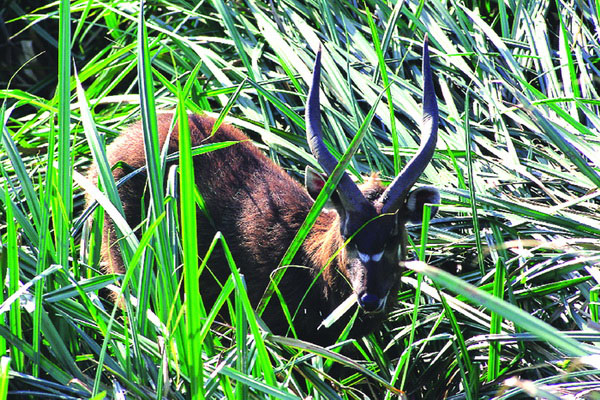 A dense, vibrantly green realm of swamp, bulrushes, sedges and surrounding riverine forest, Saiwa Swamp - Kenya’s smallest national |
