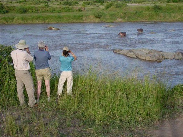 Never get between a hippo and the water; stay well away from lakeshores at night: hippos are VERY dangerous; more people are killed by hippos in, for instance, Kenya than by any other animal.