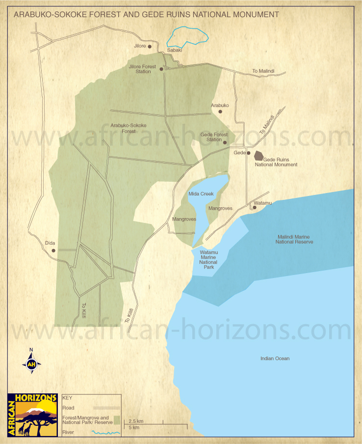 Map of Arabuko Sokoke Forest Reserve in Kenya; An East African safari and travel destination